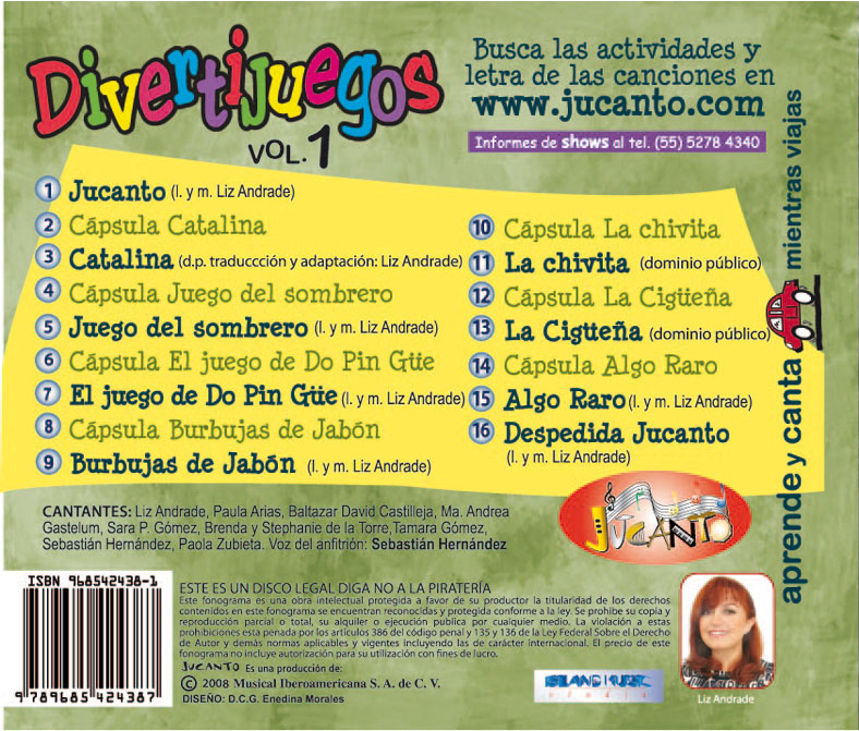 Canciones: Jucanto, Catalina, Juego del sombrero, El juego de Do Pin Güe, Burbujas de Jabón, La chivita, La Cigüeña, Algo Raro, Despedida Jucanto